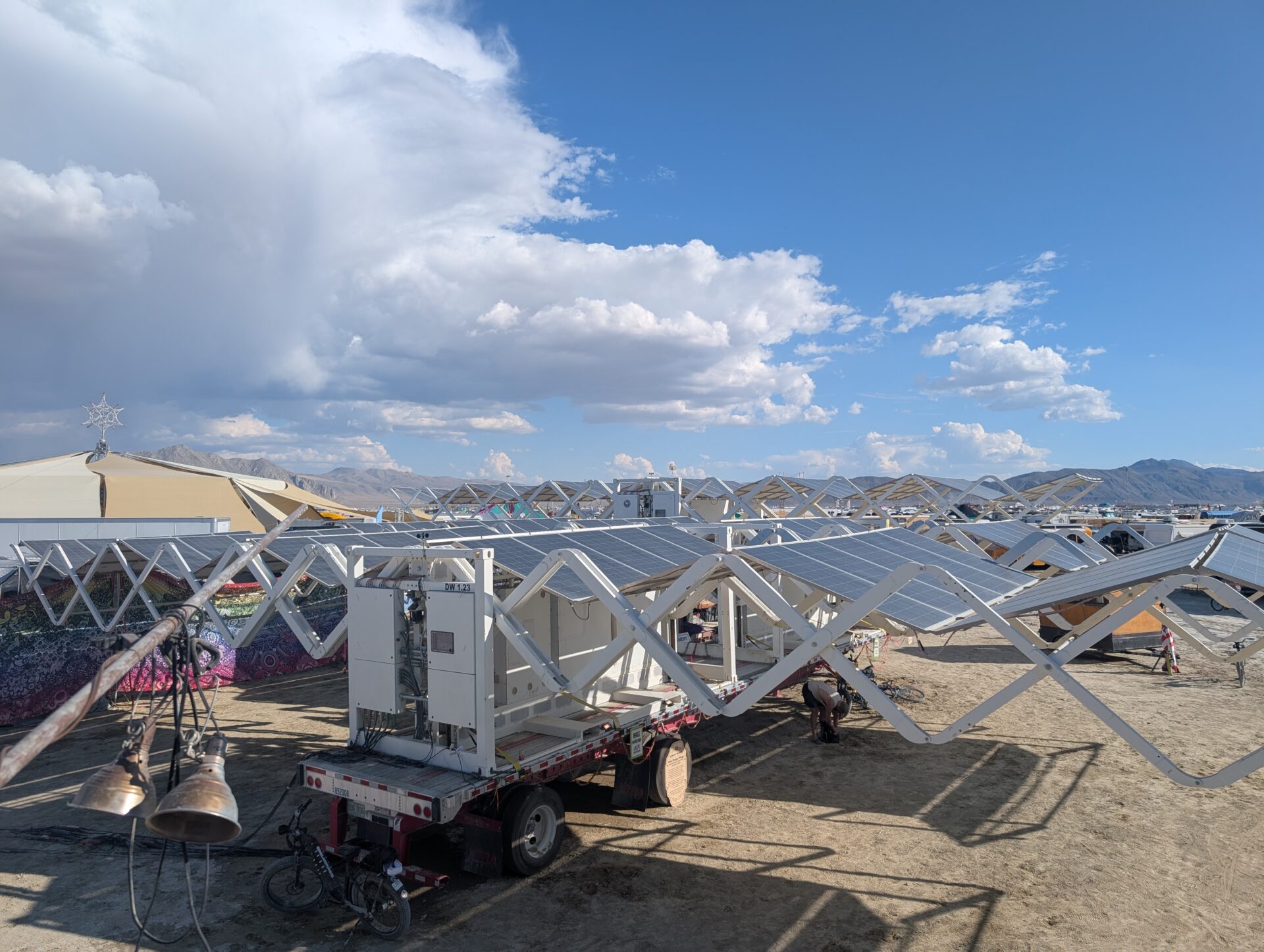 Net Zero Black Rock City is Burning Man Project’s core initiative focused on transitioning Black Rock City off of fossil fuels, and empowering camps and participants to reduce our collective emissions. We’ve integrated batteries into power grids, piloted R99 diesel and renewable propane, expanded solar infrastructure, deployed solar light towers, and more. Net Zero Black Rock City is funded through the generosity of impact-driven donors. Learn more about our progress to transition Black Rock City off of fossil fuels (OFF) and the role camps and participants play in reducing our collective emissions. Learn more about Net Zero strategies.